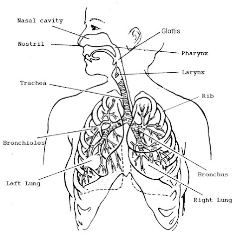 मानव में श्वसनतन्त्र का चित्र बनाइए और निम्नलिखित भागों को नामांकित कीजिए