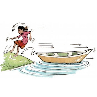 2. नाव से जमीन पर उतरते समय, नाव का पीछे हटना।