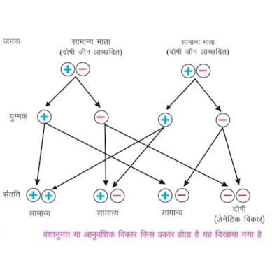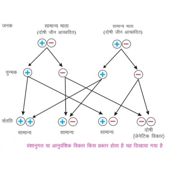 जीन सभी लक्षणों को नियंत्रित करती हैं । कभी - कभी किसी जीन का युग्मक या युग्मज में बदलाव उत्परिवर्तन आ जाता है । उत्परिवर्तित जीन सामान्य नहीं रह सकती । इसके अलावा कभी - कभी जनक में मौजूद कोई दोषी जीन की अभिव्यक्ति नहीं होती क्योंकि दोषी जीन की अभिव्यक्ति उसके जोड़े के दूसरे सामान्य जीन ने दबा छिपा रखा हो । परंतु हो सकता है कि संतान में प्रत्येक जनक से वही एक - एक दोषी जीन पहुंच जाये और दोषी जीन की जोड़ी की उपस्थिति से एक हानिकारक प्रभाव आ जाए । इस तरह के विकार को वंशानुगत या आनुवंशिक विकार कहा जाता है ।